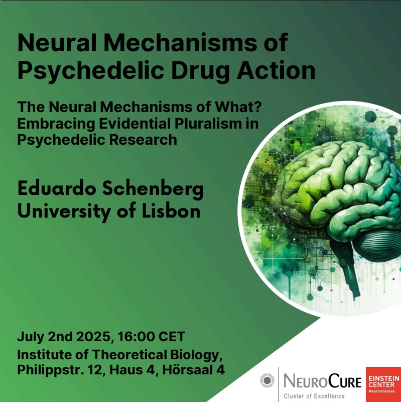 As part of the ongoing Student/Postdoc-Run Speaker Series (SPRSS), and on behalf of the Neural Mechanisms of Psychedelic Drug Action Group, Dr. Eduardo Schenberg from the University of Lisbon will give a talk titled "The Neural Mechanisms of What? Embracing Evidential Pluralism in Psychedelic Research."