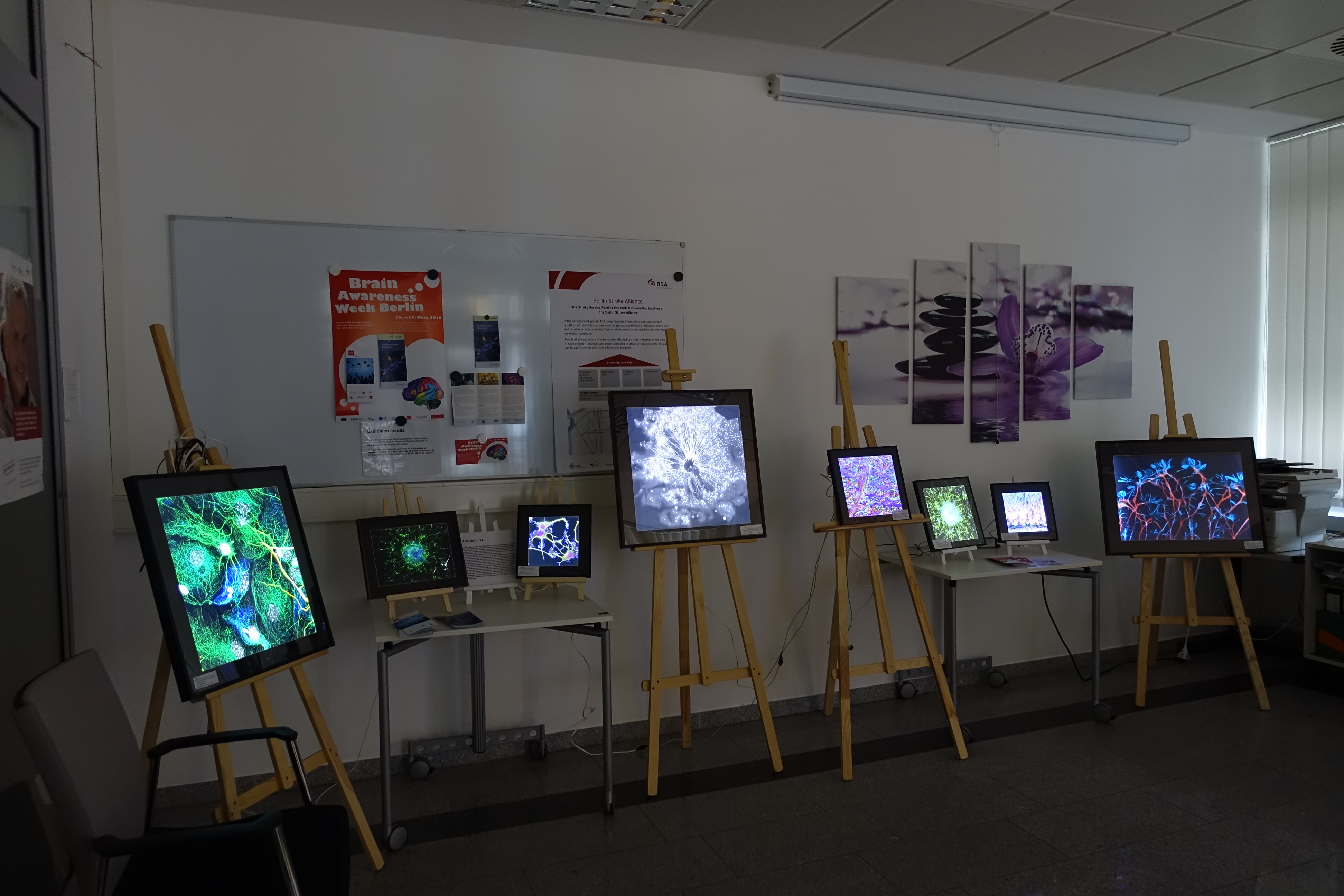 During the whole week, the photo exhibition “The Beautiful Mind” was displayed at the Servicepunkt Schlaganfall at the Charité Universitätsmedizin Berlin. It showed 20 large-size illuminated photos of neurons that were taken in several labs all over the world.