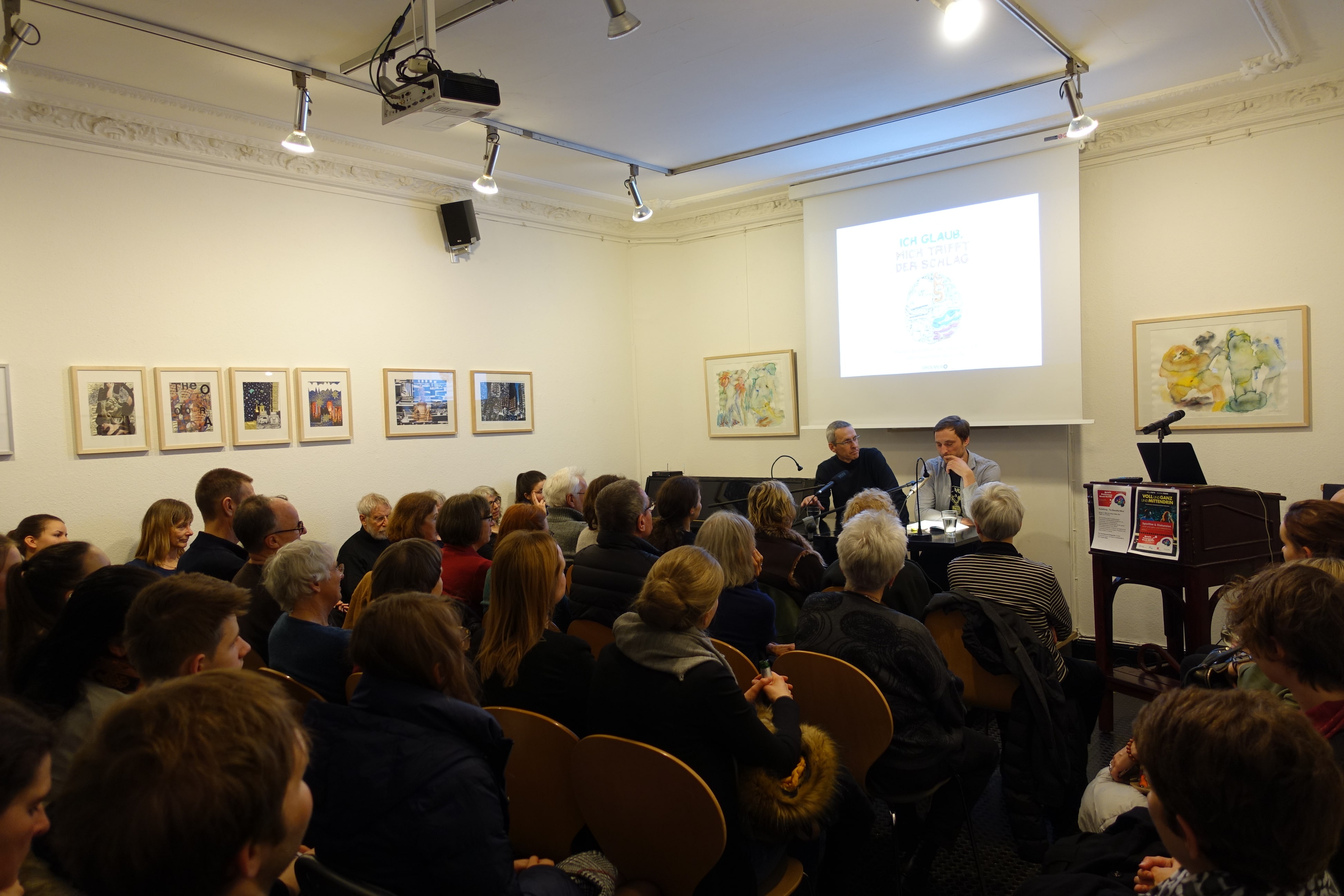 Prof. Dr. Ulrich Dirnagl and Dr. Jochen Müller gave a lecture at the Buchhändlerkeller in Charlottenburg. The book “Ich glaub mich trifft der Schlag” is a popular science introduction into brain function and disfunction. The authors were happy to answer the audience’s questions after the presentation.
