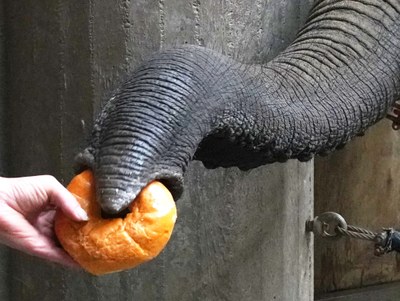An African elephant grabbing a bun. New data show the extraordinary sense of touch of the elephant's trunk.